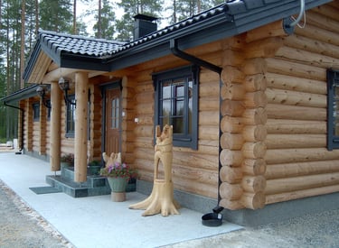 Асортиментът от продукти от трупи също е уникален: произвеждаме собствени сгради от масивни и кръгли трупи, както и разпространяваме рендосани, ламинирани и CLT конструкции на Timber Frame Oy.